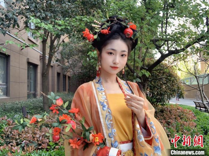 上巳节当日,被称作“百花生日”的花朝节也在西安多地举行。作为花朝节的常客,汉服“同袍”常鏸文扮作“石榴花神”参与其中,“我和朋友们越来越乐于庆祝传统节日,除了可以展示汉服之美外,这些节日所带来的仪式感也无法替代。”