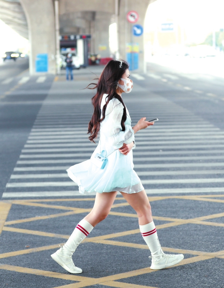 4月8日,郑州迎来今年首个高温天气,气温超30℃,暖热如夏。下午2点,走上街头感觉热浪滚滚,一阵阵暖风扑面而来。花园路国贸广场门前,穿出夏装短裤、短裙的少年、美女并不少见(如左图、右图)。据了解,郑州市当日最高温度30℃到31℃,气温打破郑州4月上旬最高纪录。(大河报·豫视频记者 白周峰 文图)