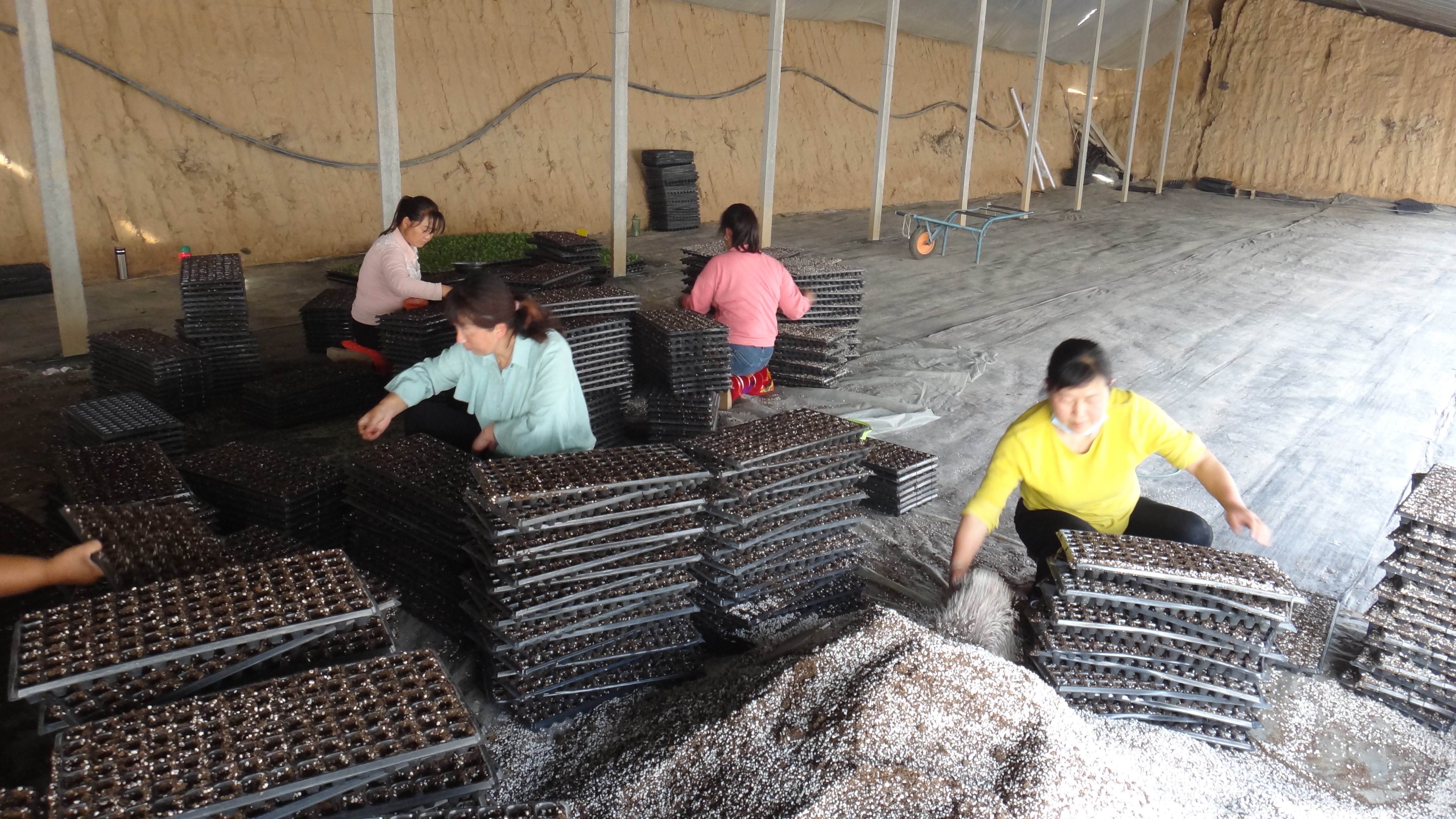 据悉,这是第三批菜苗,在5月1日前将这些苗全部卖出去。现在有茄果类和瓜类两大类17个品种,主要是圣女果苗和美都、逾辉西瓜苗,270万棵圣女果苗可种植1300多亩,西瓜苗可以种1000余亩,这些苗可以收益一百来万元。再有10天,有9个棚的苗能给种植户带来经济收入3000万元。
