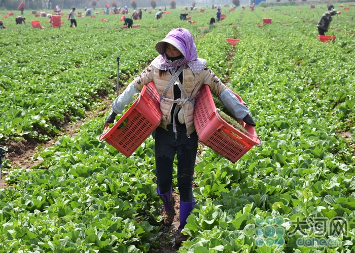 大河网讯 4月6日上午,在汝州市临汝镇彦张村南侧的青菜田里,穿着深口胶鞋的采摘工们正在弯着腰采摘青菜,小型货车穿梭在田间道路上,将装满青菜的红色筐子拉出地块后,再转运到大型冷藏货车上,直接发往广州、深圳、香港等大都市。