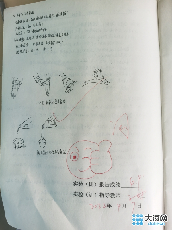 “在批改21级护理系部分学生的实训报告时,看到他们精心绘制的无菌技术图案,被大家的认真态度所触动,就想着换个方式批改,为他们点赞。”张琳老师说,无菌技术操作在护理专业中非常重要,看到同学们出色地完成了作业,就根据每个学生的特点,手绘了一些图案进行批改,希望通过这种方式肯定和鼓励学生们的学习态度。