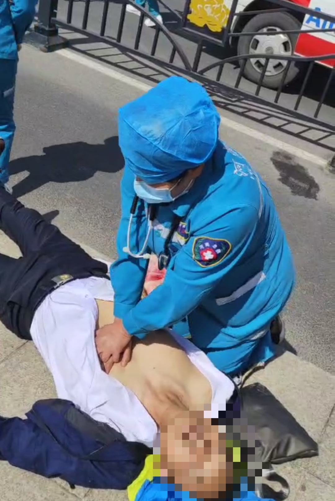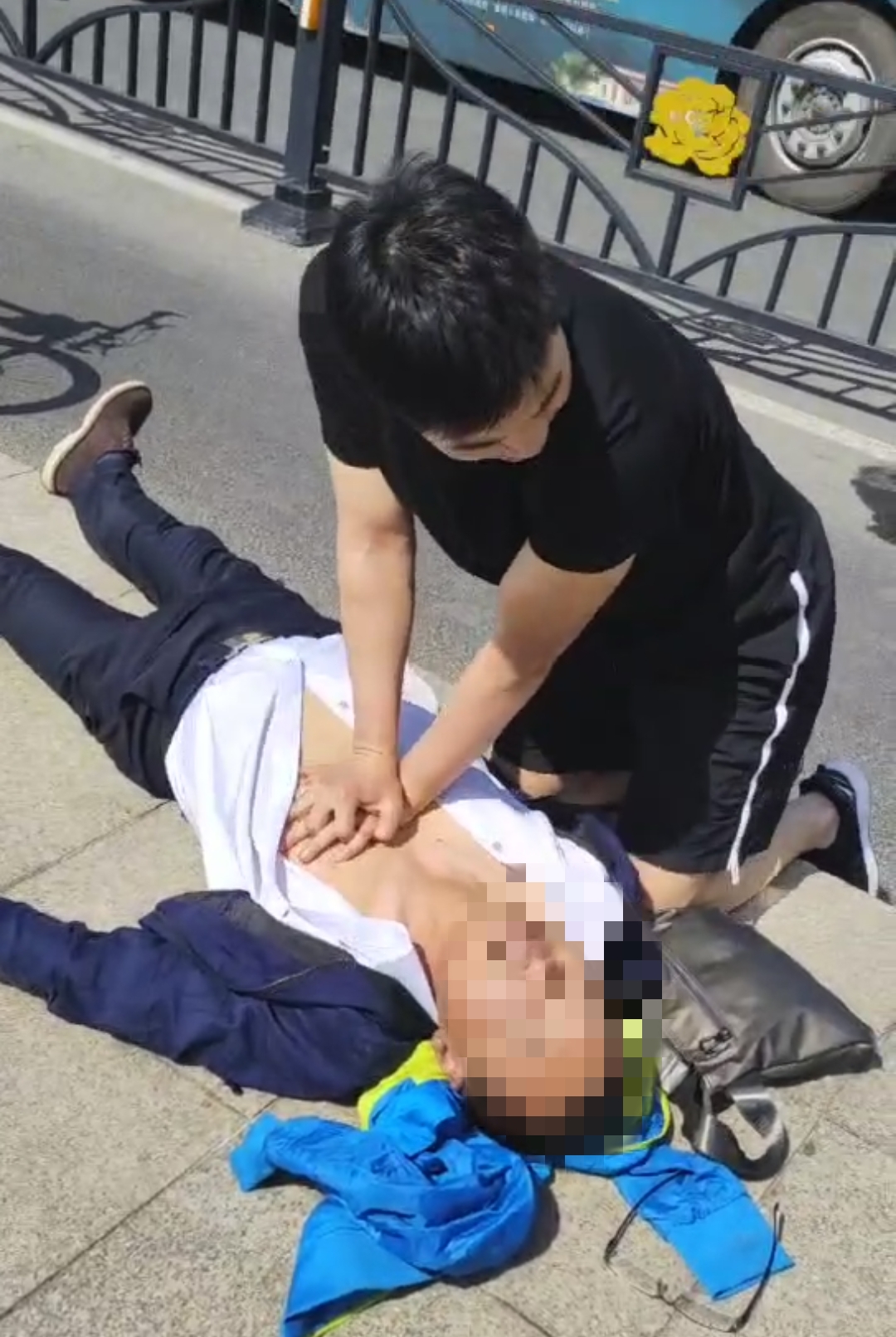 洛阳街头一名男子突然倒地不醒,男护士冲上去跪地救人