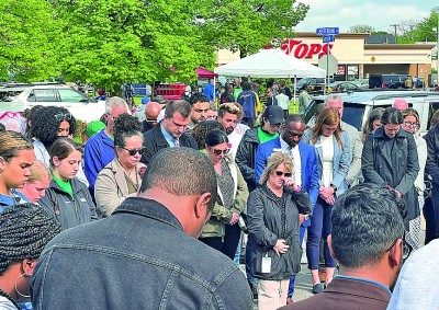 图为5月16日,在美国纽约州布法罗市,人们悼念枪击事件遇难者。新华社发