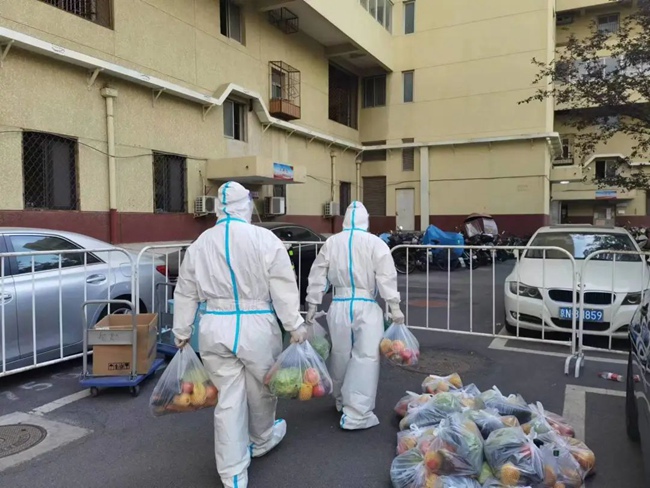 海淀区85000份“爱心蔬菜包”送进封控管控区。