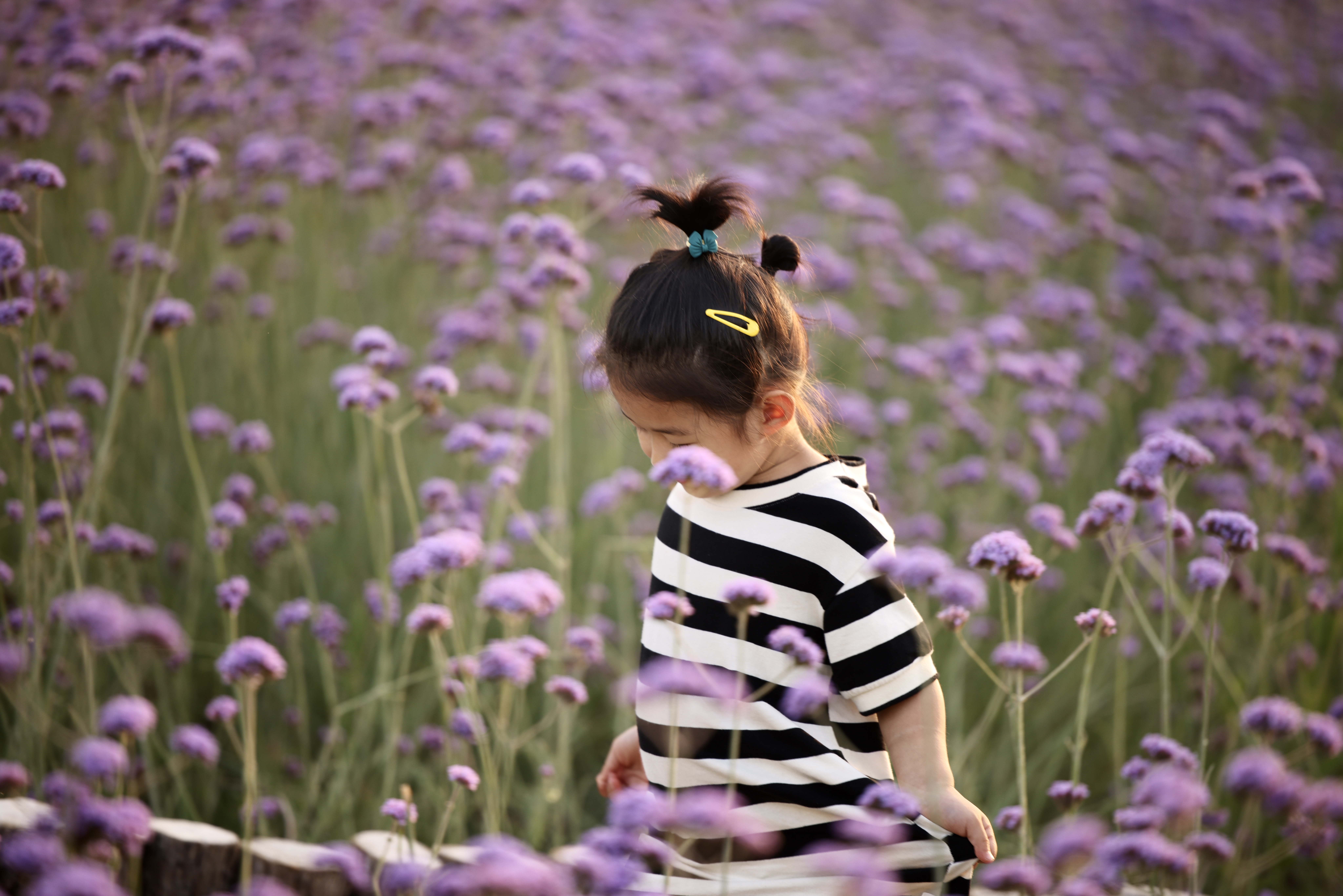 六月天气正好,小朋友在花丛中玩耍
