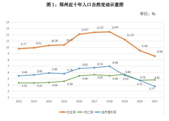 (二)人口自然增长率继续走低。2021年全市出生人口10.90万人,比2020年减少0.90万人,人口出生率为8.58‰,比2020年下降0.90个千分点;死亡人口6.10万人,比2020年增加0.20万人;人口死亡率为4.81‰,比2020年微升0.06个千分点。受双独、单独及全面二孩政策的影响,全市近10年来人口自然增长率曾在一段时期内保持了上升的趋势,但自2019年以来,开始走低,但仍好于全国、全省平均水平。虽然有2021年开放三孩的政策支持,但三孩开放时间较晚,受各种因素的影响,其效应暂未显现。