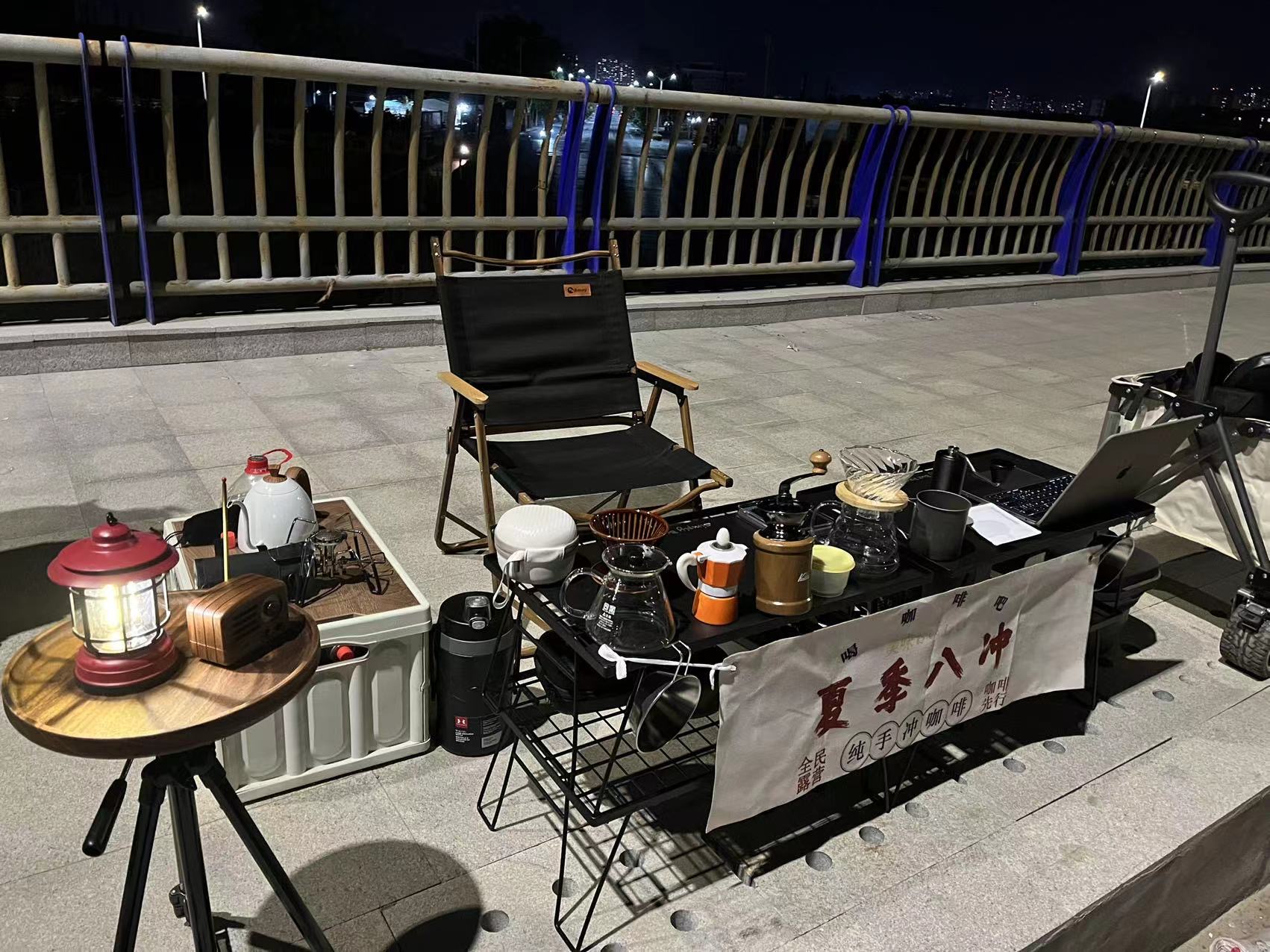 田暄经营的是一家移动咖啡店,起初做咖啡的一套装备是露营使用的,将装备放到后备厢说走就走,非常方便。