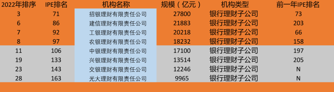 尤其值得注意的是,资管新生力量理财子公司大爆发,其中,建信理财从前一年的全球203名上升至86名,前进了117名。