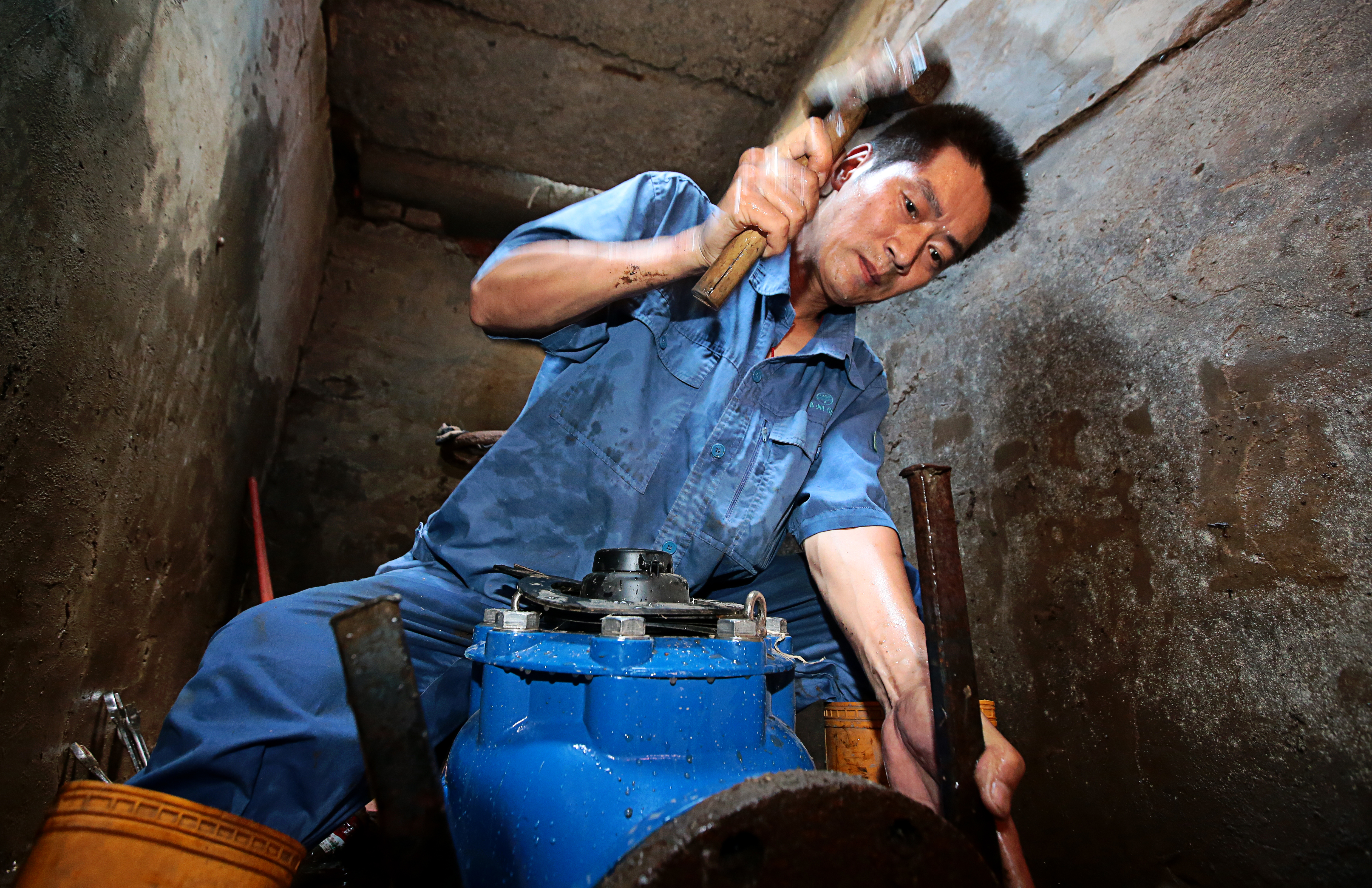 炙烤天气下的劳动者,郑州自来水公司营业处水表抢修