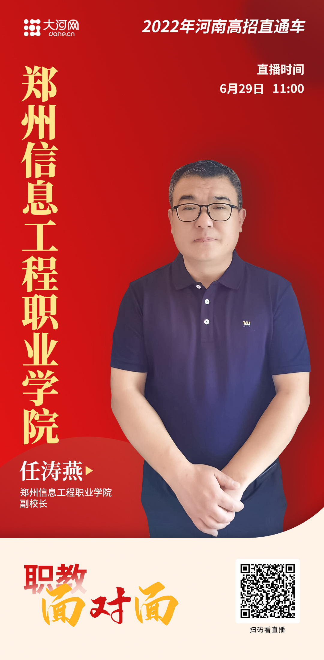 大河网讯 共有36个专业进行招生,相比去年,增加了统招招生计划的分配比例,计划充足……近日,郑州信息工程职业学院副校长任涛燕做客大河网“职教面对面高招系列访谈”,详解学校招生政策,为考生和家长志愿填报支招。