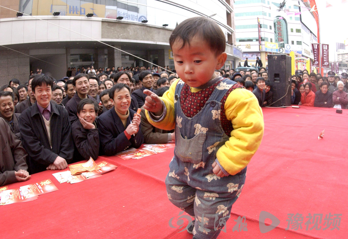 2003年3月3日,郑州二七广场,一名儿童在舞台上跳街舞。