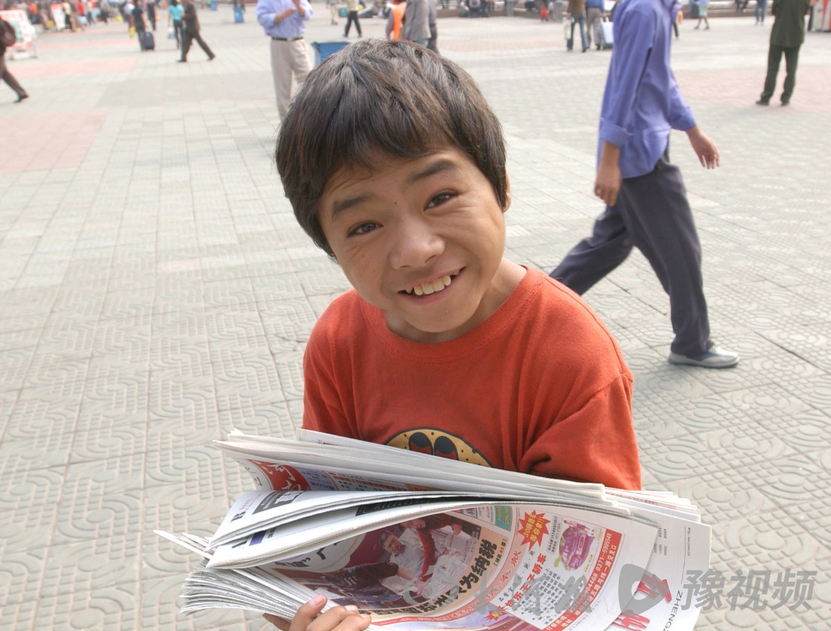 2002年9月17日,郑州火车站广场上,一名少年在帮家人卖当日报纸。