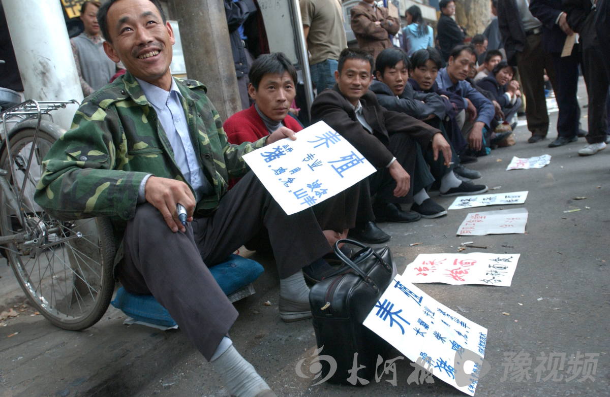 2002年10月11日,郑州市二马路劳务市场上,一名进城找农活儿干的农民。