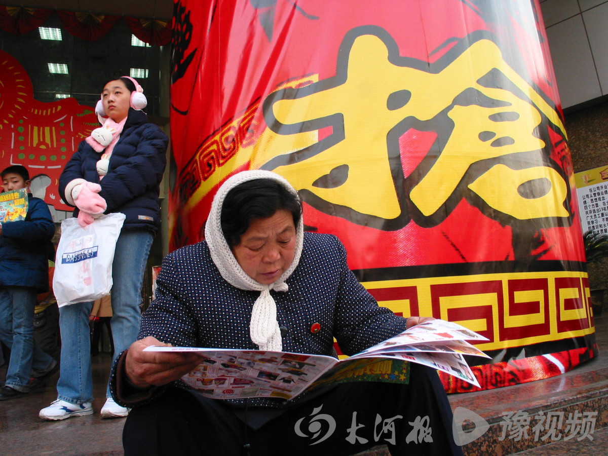 2001年12月31日,郑州市金博大商场门口,一位等待商场开门后抢购特价日用品的市民。