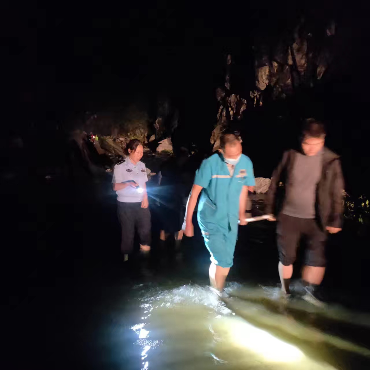 7月23日零时20分,卢氏县公安局沙河派出所接到该局110指挥中心指令:辖区一名女子突发疾病急需就医,但因连日降雨、河水暴涨,前往救治的120急救车辆无法到达现场,急需民警配合处置。该所指导员李凤敏立即带领辅警张志强、莫秦波、马淑娟,火速驱车赶往10公里外的现场。狂风暴雨中,訇訇的水声更增加了大家内心的焦灼。第一时间拟定救助方案后,李凤敏等民辅警和医护人员冒雨蹚着深度超过15厘米的水到对岸,用担架将已被家人设法送至河边的病人抬到近30米外的救护车跟前并紧急送医。由于送治及时,病人转危为安。