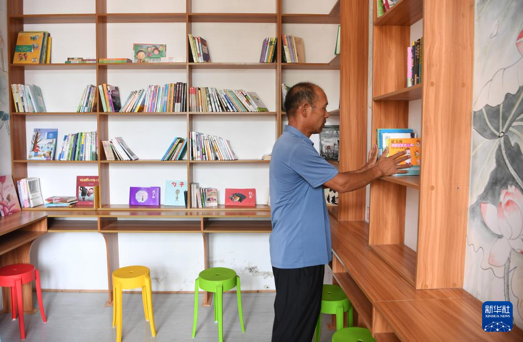 7月27日,在河南新乡长垣市丁栾镇官路西村,管理员在农家书屋整理书籍。