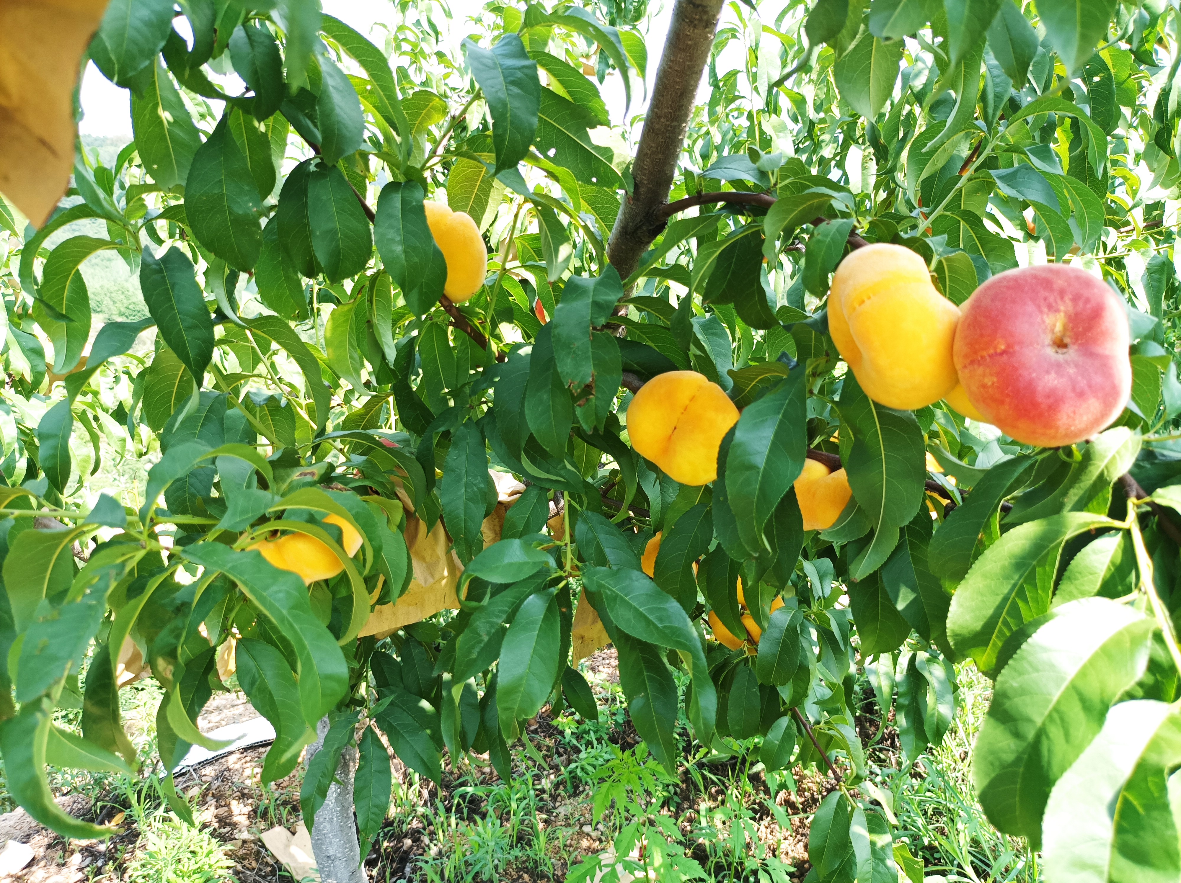 大河网讯 8月1日,在鲁山县尧山镇新庄村,村外山坡上一座偌大的桃园映入眼帘,一个个扁平金黄的蟠桃在茂密的枝叶间露出了笑脸。