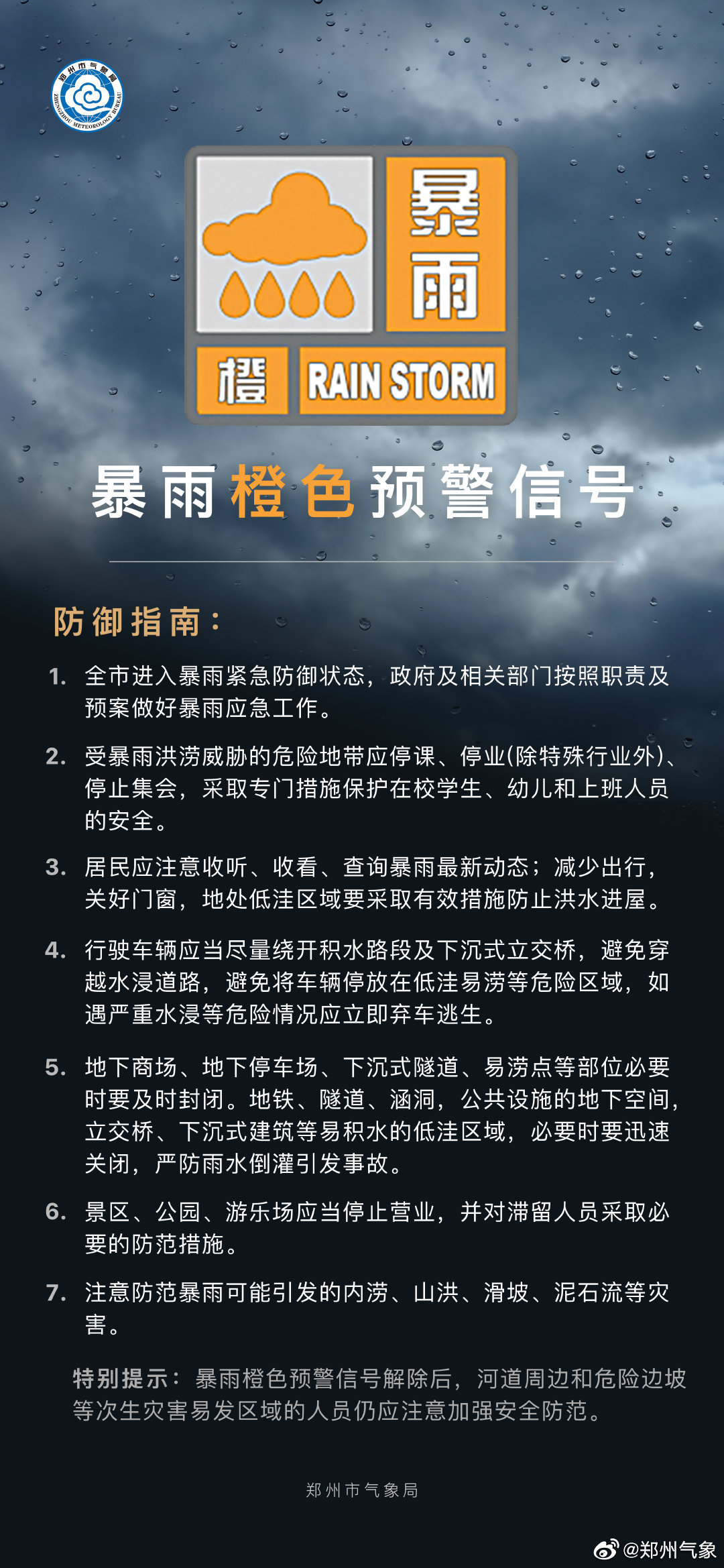 ·郑州更新发布暴雨橙色预警信号,中原区已出现50毫米的短时强降水