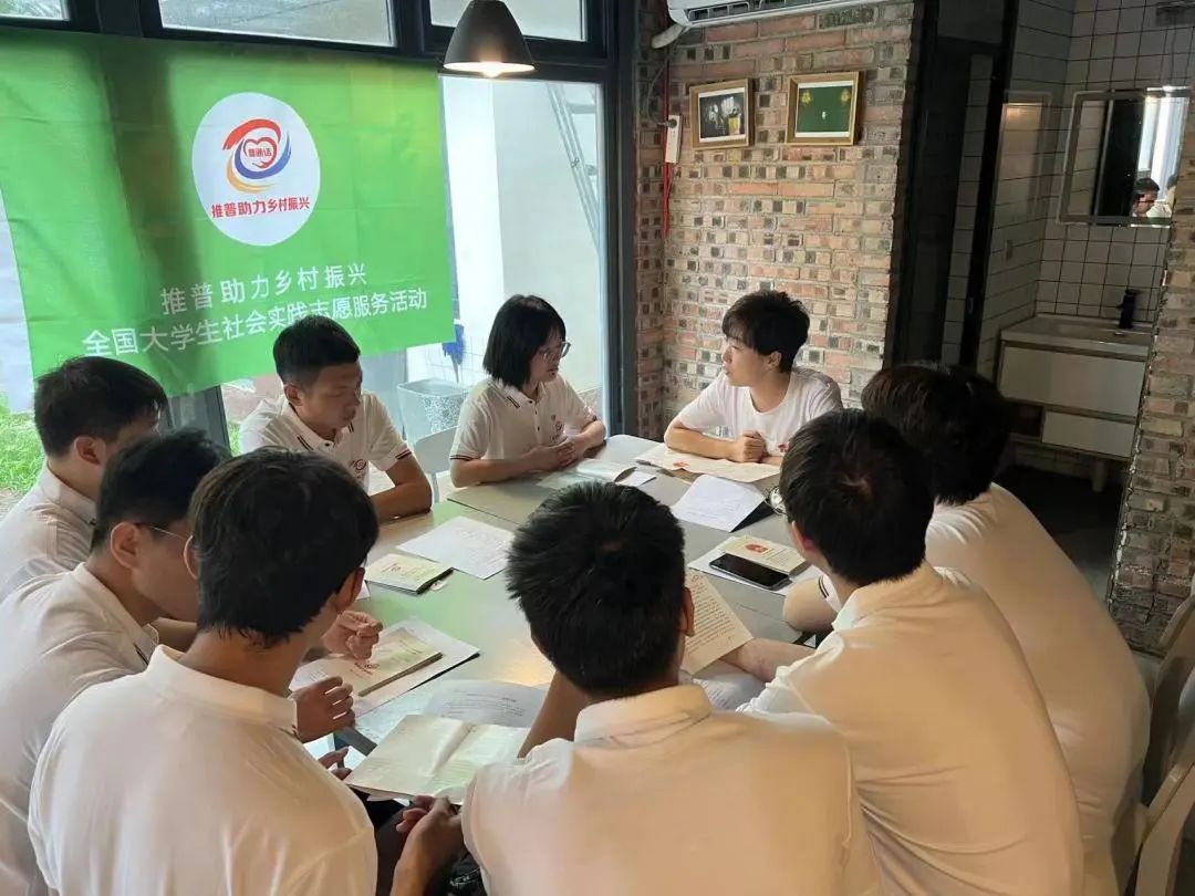 心心相通语先同,推普调研在行动。8月9日下午,该实践队召开了日程安排统筹会。为了顺利开展推广普通话助力乡村振兴活动,小队就次日推普问卷调查工作召开团队例会。团队重点进行了普通话知识及党史团史方面的学习与总结,为次日宣讲打好了理论基础。带队老师朱晓婷指出:“推普实践队要与互联网信息技术相结合,将爱国之情化为实践行动,以语言的力量走进红旗渠畔,传递正能量,为实现乡村振兴贡献自己的青春力量”。