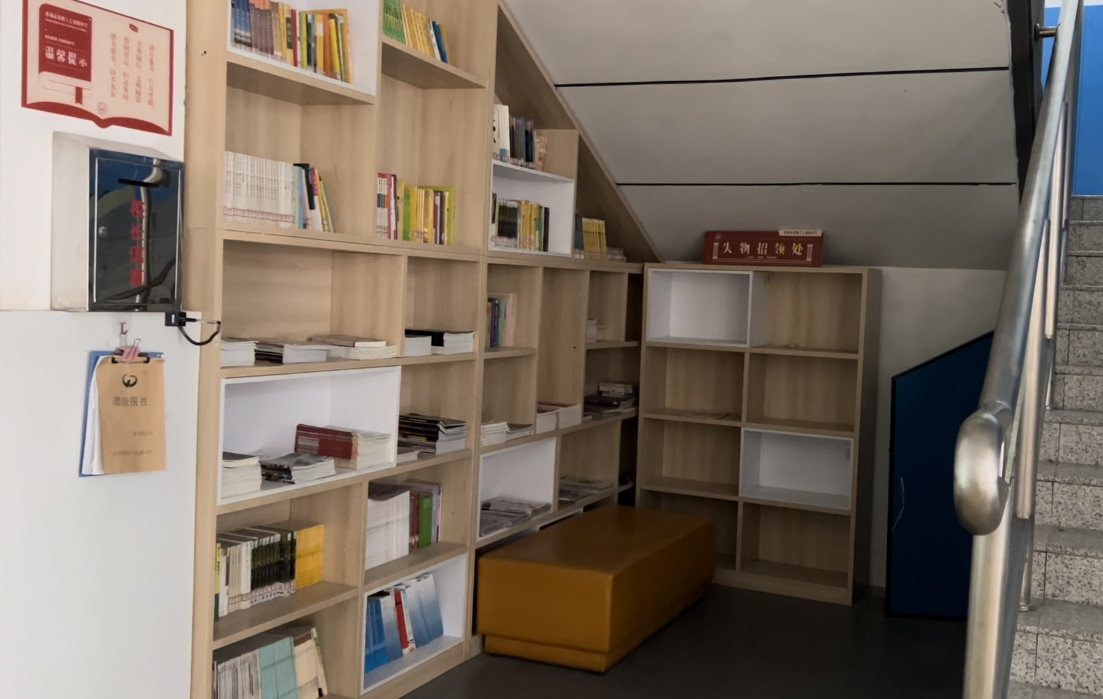 “在二楼、三楼同样的位置,都有读书角。这些图书由学生自行借阅、自行归还,目前没有丢过一本书。”蒋凯介绍。