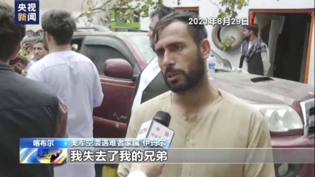 美军空袭遇难者家属 伊玛尔:我失去了我的兄弟,还有他的三个儿子,我的女儿,以及四个侄子,袭击是在(29日)下午四点半发生的。