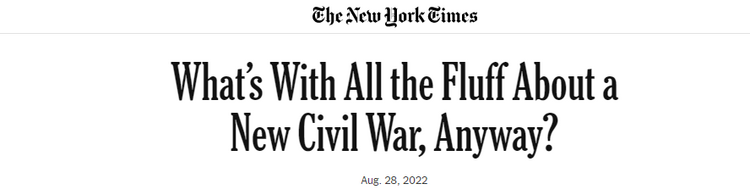 美国《纽约时报》网站8月28日发表评论文章称,“内战”最近已成为互联网上流传的那些象征时代精神的短语之一。文章提到,一名白人民族主义者在特朗普海湖庄园遭FBI搜查时宣称,“内战迫在眉睫”。