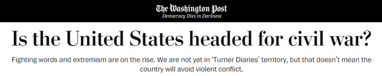 美国《华盛顿邮报》网站8月26日发表评论文章《美国是否正走向内战?》,称,自1861年以来,美国从没有像今天一样接近发生内战的边缘。包括两党政治家、研究动乱的学者、极左极右分子在内的各色群体都接受了这样一种观点,即内战近在眼前或内战不可避免。他们也给出了有说服力的证据——FBI探员、法官、官员等收到大量威胁;全副武装的激进分子们在训练营中进行对抗政府的特训;更有民意调查显示许多美国人预期将会有激烈的冲突爆发。