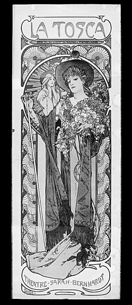 19世纪末法国政府取消演期的限制,而戏剧演期的长短可以衡量一个作品是否成功。在19世纪末,商业海报也开始大量使用石版印刷工艺,弥补了传统手绘不能批量化生产的缺陷。同时政府放松了对海报这种大众媒体的管制,因此在巴黎的大街小巷出现了艺术家们设计的各类海报。在这样的背景下,穆夏因为一张戏剧海报,职业生涯发生了戏剧性的、出人意料的转变。穆夏的艺术成功一方面是对古典艺术的创新,另一方面则有赖于现代技术。海报作为一种“复制机械时代的艺术作品”,改变了大众对艺术的反应。同时戏剧海报作为戏剧的衍生品,反过来为戏剧扩大了观众的范围——戏剧演出具有现场性,是不可复制的艺术,其观众的数量往往是有限的,然而戏剧海报的流行却提高了戏剧的大众性。