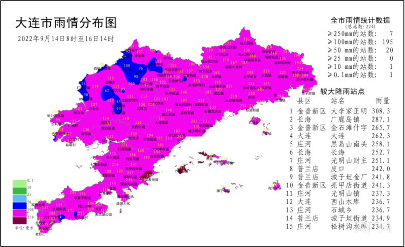 大连市雨情分布图(央广网发 大连市气象局供图)
