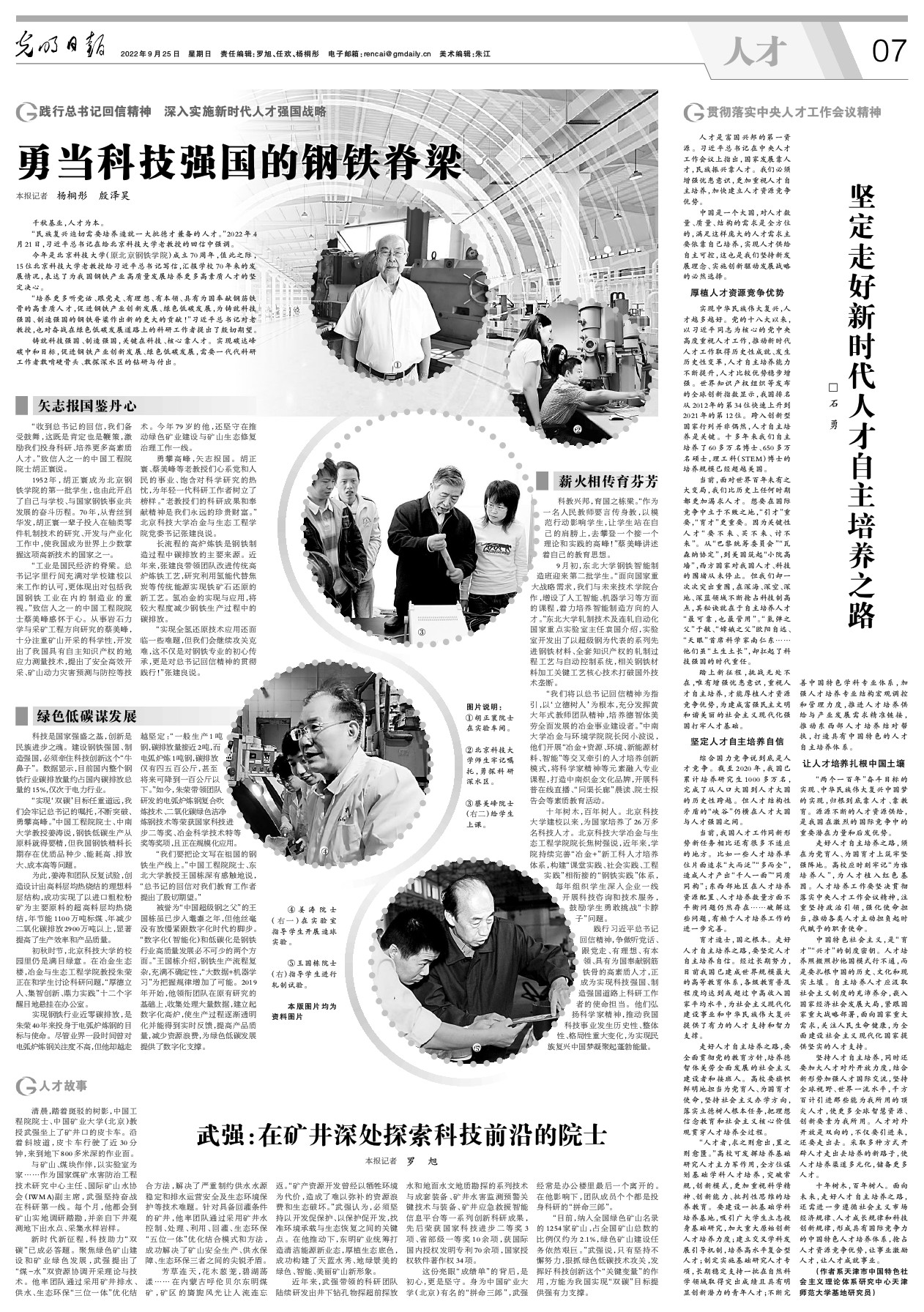 铸就科技强国、制造强国,关键在科技、核心靠人才。实现碳达峰碳中和目标,促进钢铁产业创新发展、绿色低碳发展,需要一代代科研工作者敢啃硬骨头、敢探深水区的钻研与付出。