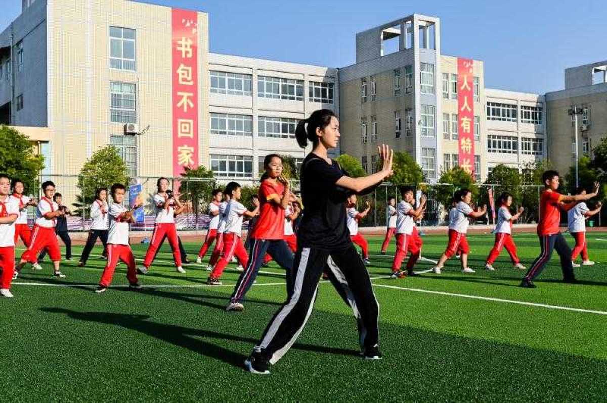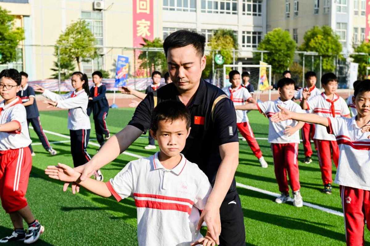 在焦作市实验小学,武术冠军运动员张振兴、李洋艺、严宁宁先带领孩子们做了热身运动,然后分别对太极拳基本动作进行了细致讲解,手把手地教授学生太极拳的练习要领,还多次进行亲身示范。学生学得全神贯注,一招一式有模有样。全体师生对本次活动反响热烈,对传统文化展现出极大的热情和兴致。