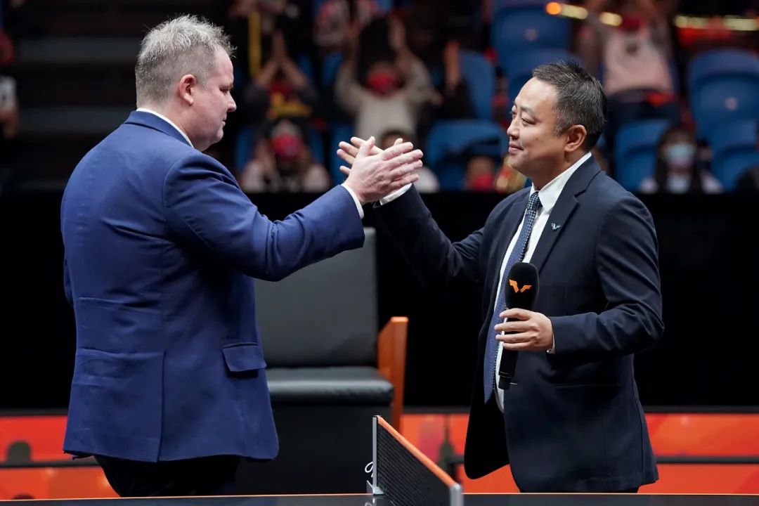 比赛开始前,WTT世界乒联董事会主席、国际乒联第一副主席、中国乒协主席刘国梁与WTT世界乒联董事、国际乒联集团首席执行官史蒂夫·丹顿先生分别发表致辞,向支持本次赛事成功举办的有关各方表达了感谢。