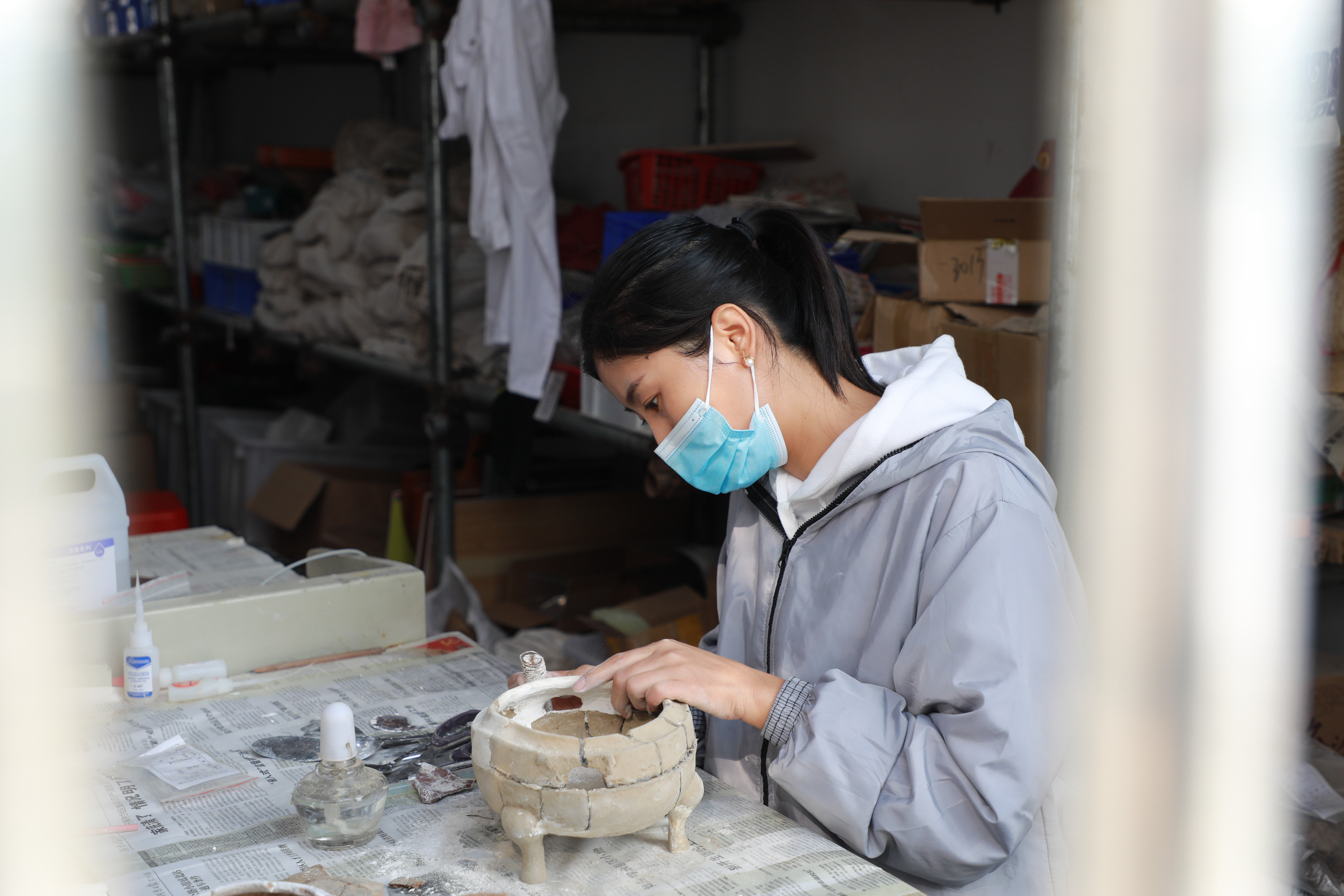 坐在临窗位置的修复师王金香是名85后,她正拿着牙刷清理陶器碎片上的泥垢,随后进行打磨拼接。据介绍,她现在修复的是城阳城墓群出土的一批陶器,手上这个陶罐再花个三四天就能修好了。生于城阳城,长于城阳城,这座城悠久深厚的历史文化和丰富耀眼的历史遗存,让王金香从小耳濡目染。2019年,河南省文物考古研究院招聘文物修复师,王金香毫不犹豫地报了名。