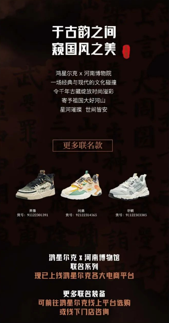 “鸮尊”"问鼎""弄墨”"寻铜” 河南博物院x鸿星尔克联名战靴上线