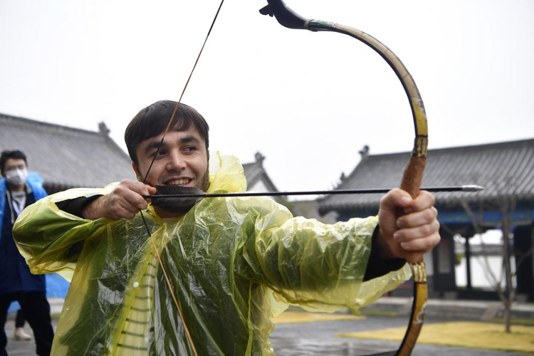 来自塔吉克斯坦的云晖体验射艺 摄影 张侃