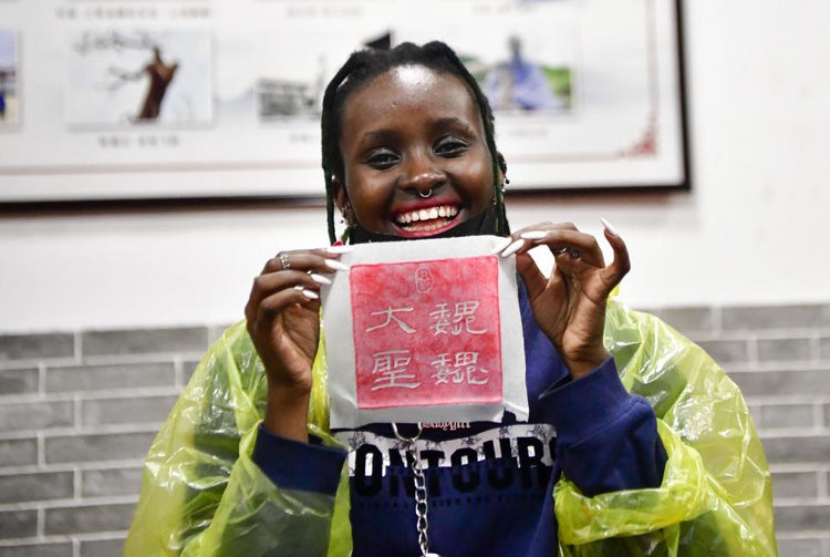 讲着一口流利的中国话的莉迪亚,来自肯尼亚。她对篆刻技艺产生了浓厚兴趣,“刻刀在石头上游走,感觉整个人的身心都放松了”。