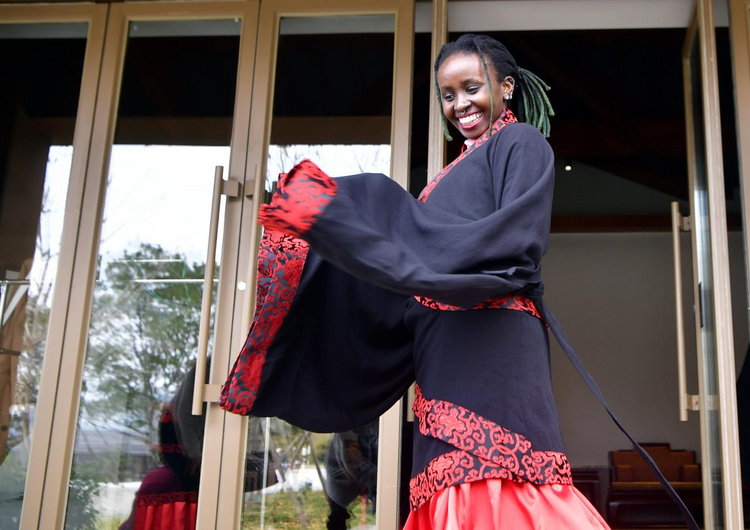 来自肯尼亚的莉迪亚着汉服挥舞衣袖 摄影 张侃