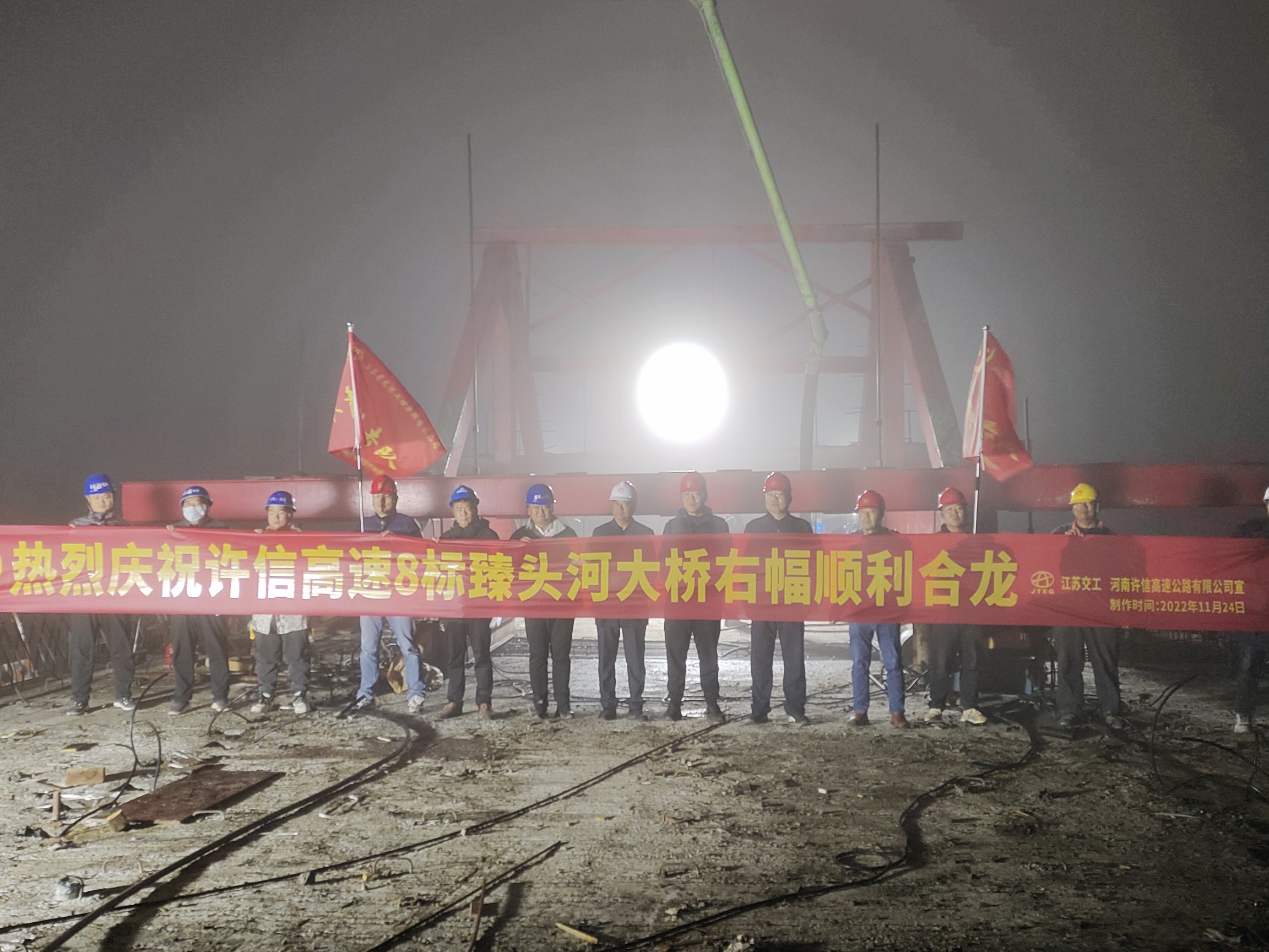 大河网讯(记者 祝传鹏)11月26日22时,随着最后一方混凝土浇筑完成,许昌至信阳高速公路第8合同段溱头河大桥顺利实现双幅合龙。至此,年内计划通车的许昌至信阳高速公路第5至9合同段控制性工程已全部完工,向顺利通车运营又迈出关键一步。