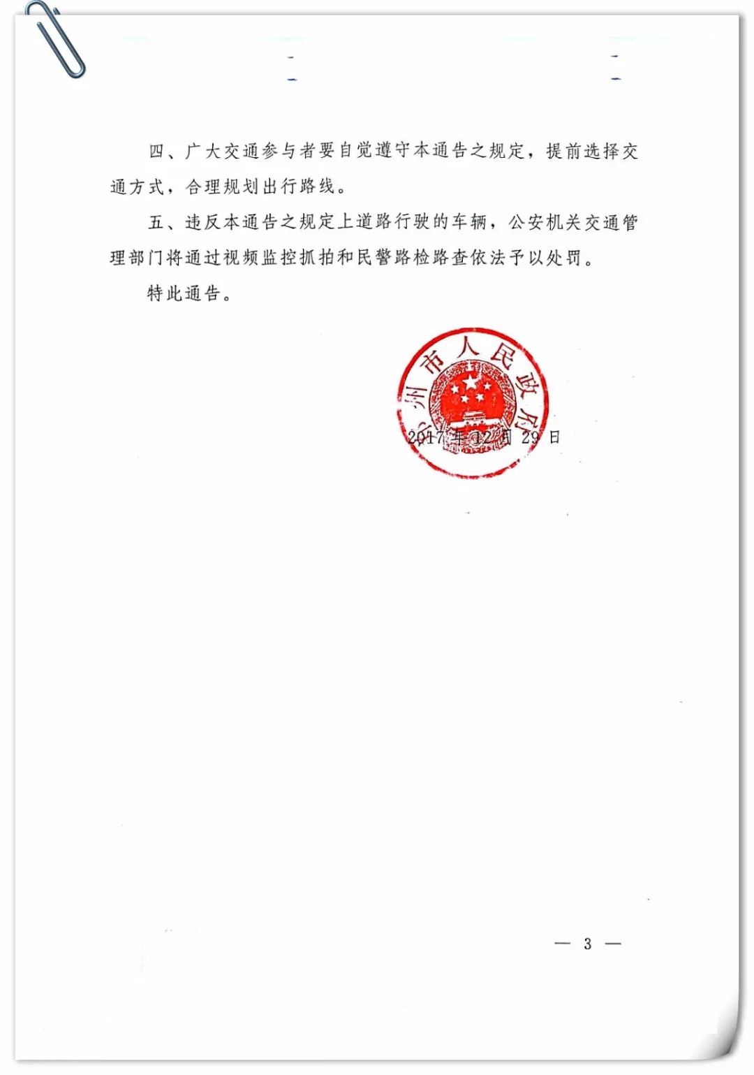 四、广大交通参与者要自觉遵守本通告之规定,提前选择交通方式,合理规划出行路线。
