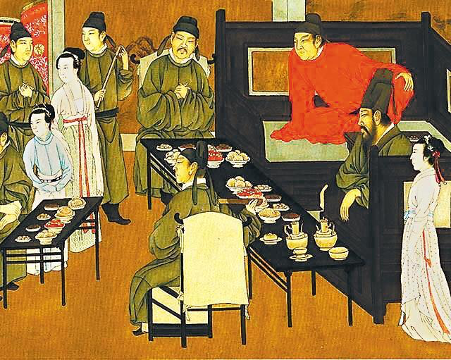 据考证,北宋合餐制开始出现,最关键的原因是北宋饮食文化的商业化。食材多元、烹饪样式增多,极大地丰富了宋代餐桌的菜色,教坊酒楼、勾栏瓦舍等公共饮食空间的出现,是中国民众饮食文化的一次重要改革。