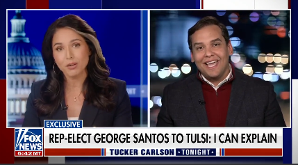 在福克斯一档专访节目中,桑托斯对话客座主持人、前美国国会众议员图尔西·加巴德时,甚至大言不惭给自己贴上“有勇气”的标签。“我认为人都有缺点,都会犯错……我不得不在媒体镜头前承认这一点,让全美都看到我有勇气认错,为了成为一名有影响力的国会议员,我必须面对我的错误。”他说。