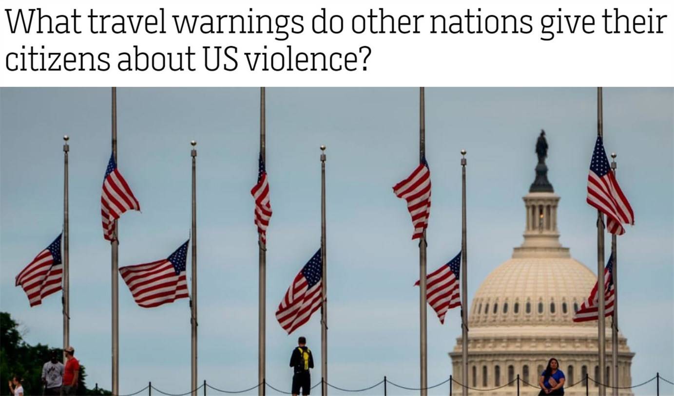 美媒去年11月底公布的调查结果显示,由于美国暴力事件频发,包括英国、加拿大、澳大利亚、新西兰等英语国家在内的9个国家已发出针对美国的旅行警告。