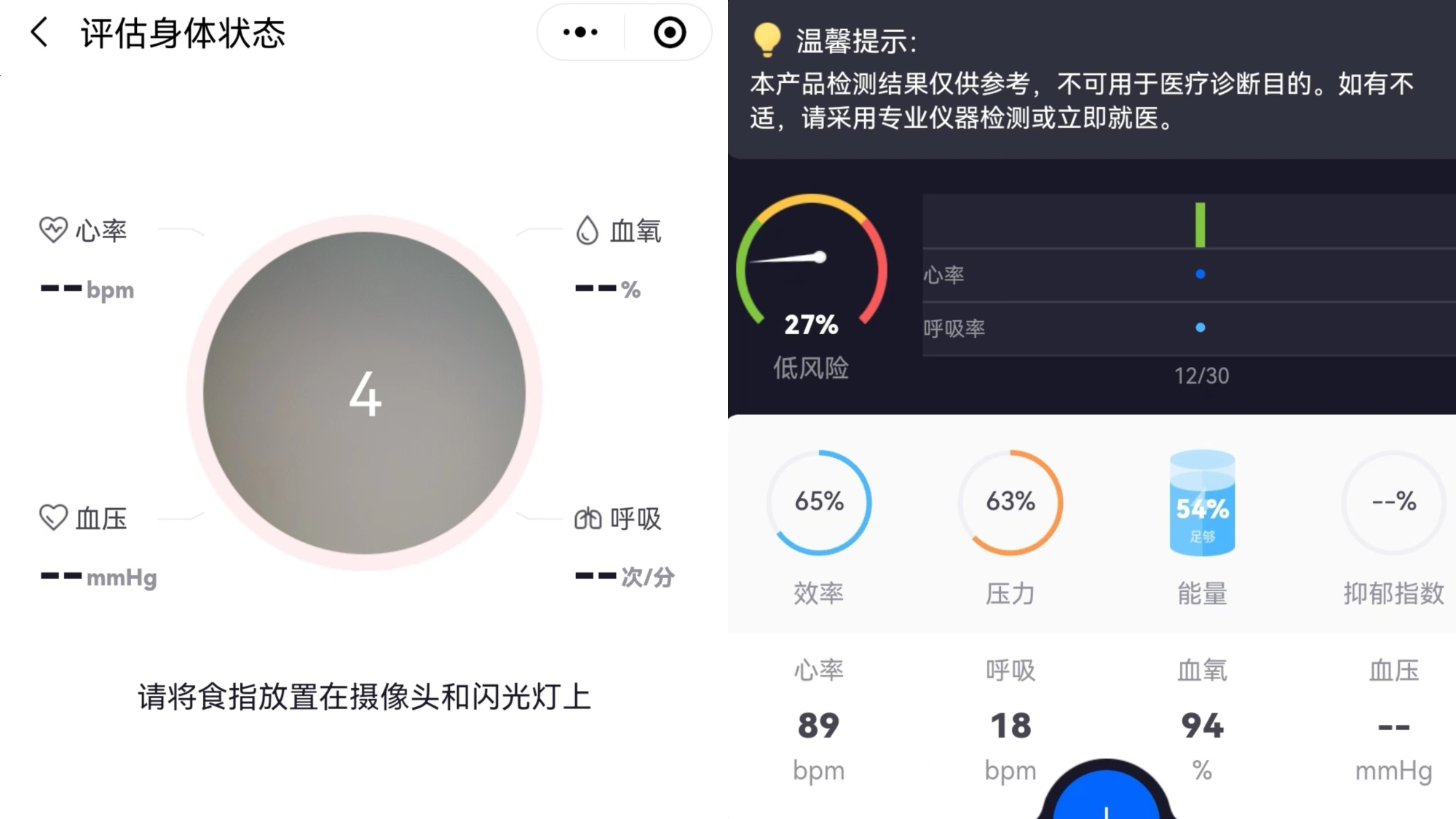 沙宪政分析称,网上类似小程序和手机App是经由手机摄像头摄像,通过测量人体手指尖或面部动脉血管随心脏搏动引起充盈的波动和颜色的变化(也就是光谱分析),来检测心率和血氧饱和度等指标的。