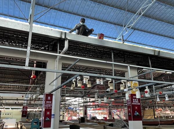 为恢复通关作准备的,除了边检、地方政府、海关等部门外,还有位于姐告国门附近的姐告玉城。玉城作为国门旁的一大地标,是游客必去的打卡点及部分缅甸人在瑞丽的家。1月6日下午,澎湃新闻看到,姐告玉城已组织工作人员对市场内的硬件进行检查和修补,如检查线路、顶棚重铺防水层,准备迎接商家和顾客的回归。此前,这里曾是瑞丽防控疫情的最前沿。
