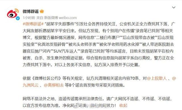 新浪微博虚假消息辟谣官方账号表示,对8个谣言首发账号采取关闭措施。