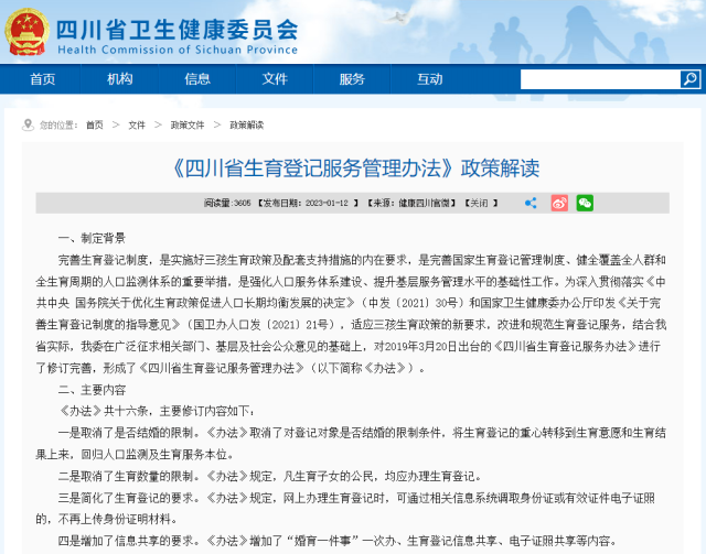 1月30日,四川生育登记取消结婚限制、取消数量限制的消息在网上引起热议。