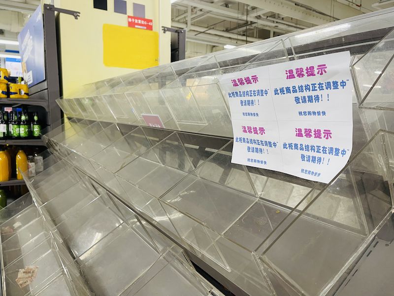 第一财经记者今天实地走访了多家上海市场的家乐福门店后发现,每家门店的情况不同,比如有些门店整体货品充足,并未发现货架空置情况。但有些门店则在散装零食糖果售卖区出现了大面积货架空置的情况,还有部分乳制品冰柜也是空空如也,这些空置的货架上还贴着“此柜商品结构正在调整中,敬请期待”的提示纸条。根据记者观察,空置的货架是一部分区域,日用品和家电类商品供应还是比较充足的。