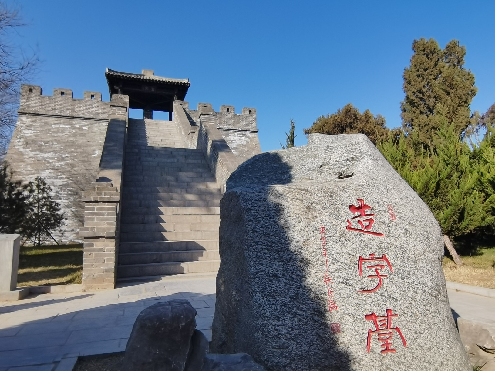 绕过陵墓,后面是仓颉造字台,名为“仓亭”。亭内有“灵龟负书碑”,刻有仓颉初创的二十八个字及其释文,揭示仓颉造字泄天地造化之密,所以,仓亭也称“启密亭”。