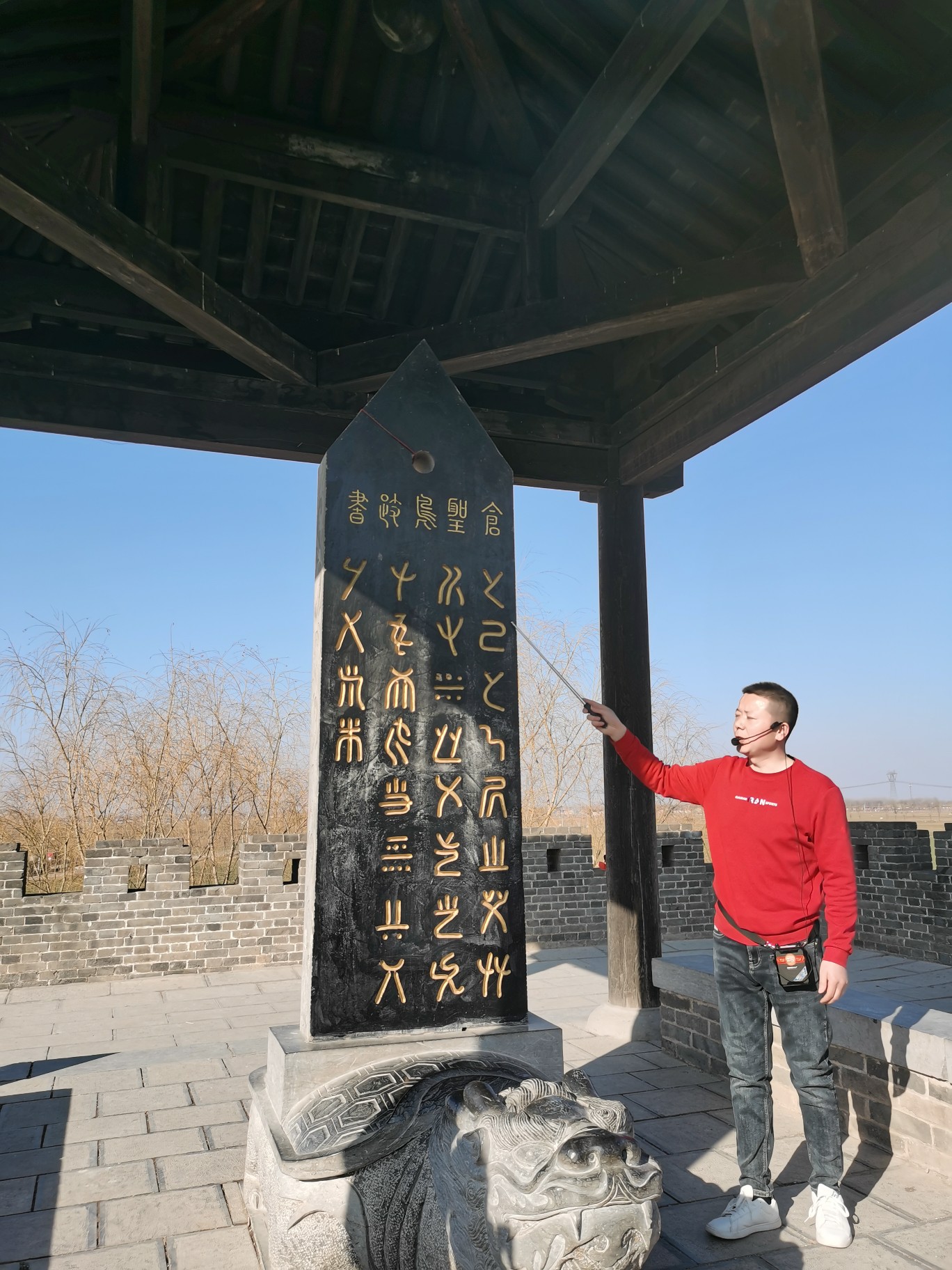 “相传仓颉是皇帝时代的史官,以结绳记事为主,大事记大结,小事记小结,随着部落扩张,仓颉已记不清大事小事发生了什么,急需新的记事方法,于是仓颉上观日月星辰,下看万物形态,发明了我们最古老的象形字,开启了中华文化新篇章……”在仓颉文化博物馆讲解员庞新刚的生动讲述下,一众人员首先来到了仓颉庙。