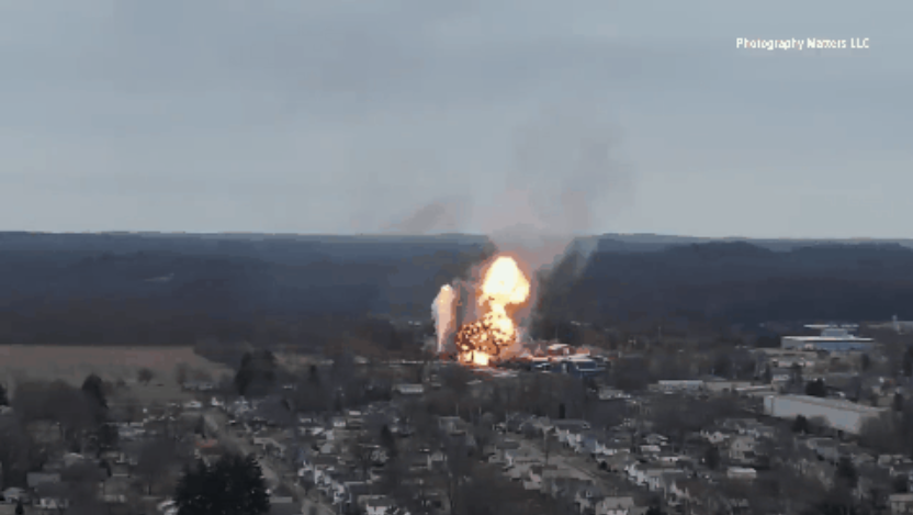 2023年2月,一列运载危险化学品的列车在美国俄亥俄州脱轨并起火,导致多种有毒化学物质泄漏。